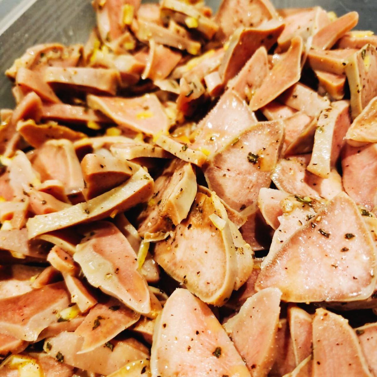 豚のタンをじっくり煮込んだのでサッパリおつまみ考案中でございます🎵