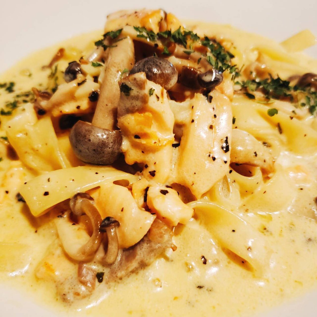 サーモンとキノコのクリームパスタ‼️